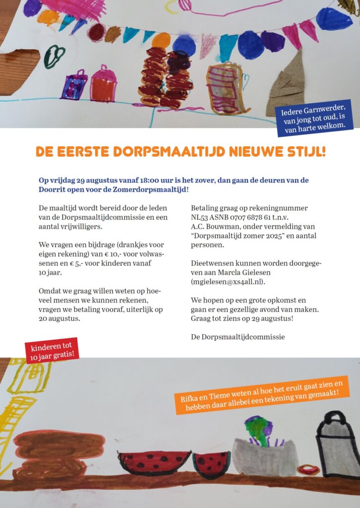Helaas kunnen wij niet aan de maaltijd deelnemen. Wij komen pas op zaterdag thuis van vakantie. Wens de organisatie een succesvolle maaltijd en de Garnwerders smakelijk eten.