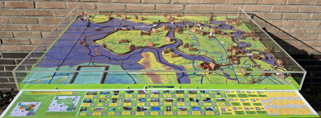 Humsterland” kwam deze maquette in het voorjaar van 2025 tot stand tijdens de voorbereiding van gecombineerde wandeltochten; dit ter ere van het 20-jarig bestaan van het Nationaal Landschap Middag-Humsterland.