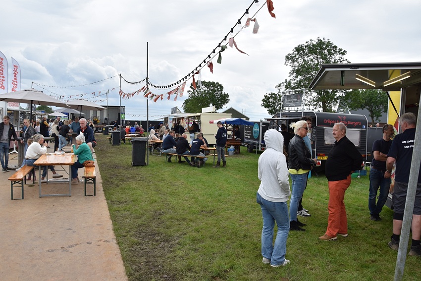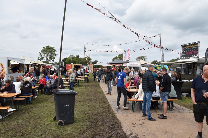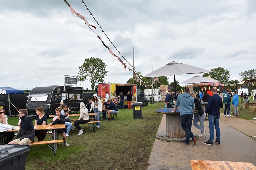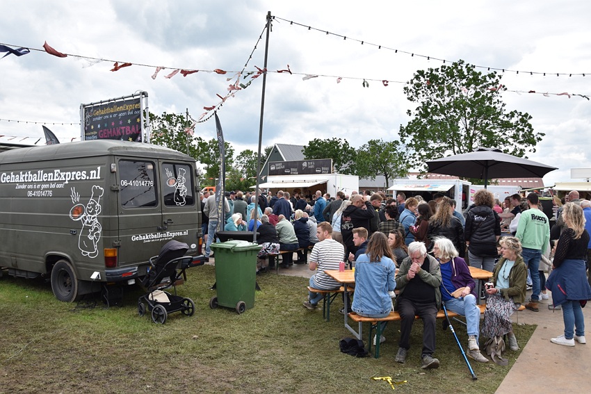 Rond 14.00 uur liepen de eerste mensen nieuwsgierig het terrein op. Er stonden verspreid over het grasveld verschillende trucks. De keuze was groot. Poffertjes, kebab, broodje hamburger, gehaktballen, vis, nacho’s, crêpes en nog veel meer.