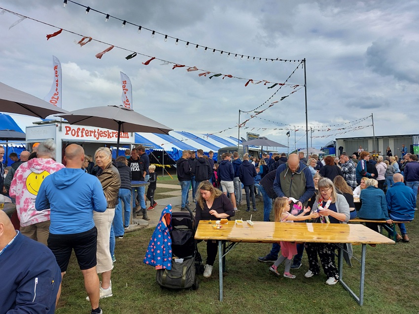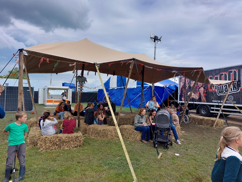 Vanaf een uur of 10 zondagochtend was er alweer volop levendigheid op het feestterrein. Veel vrijwilligers waren al druk in de weer met het opbouwen en inrichten van het terrein voor het allereerste foodtruckfestival in Garnwerd. Het moest er tenslotte wel gezellig uitzien. En dat was goed gelukt.