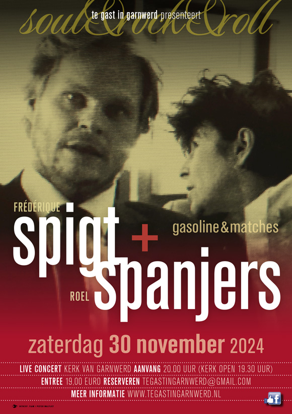 Zaterdagavond 30 november verandert de kerk van Garnwerd in een dampende, kolkende music-hall als zangeres Frédérique Spigt en toetsenist Roel Spanjers hun programma Gasoline& Matches brengen.