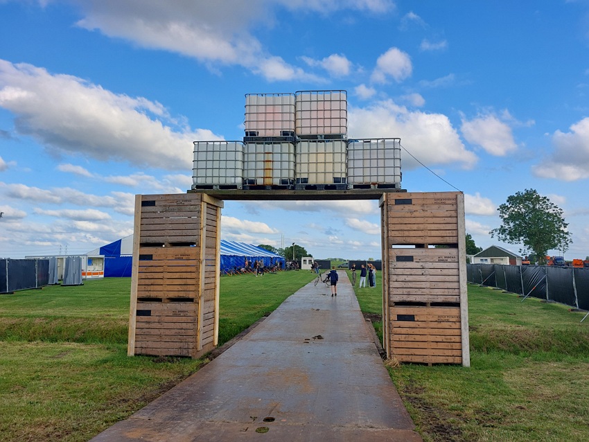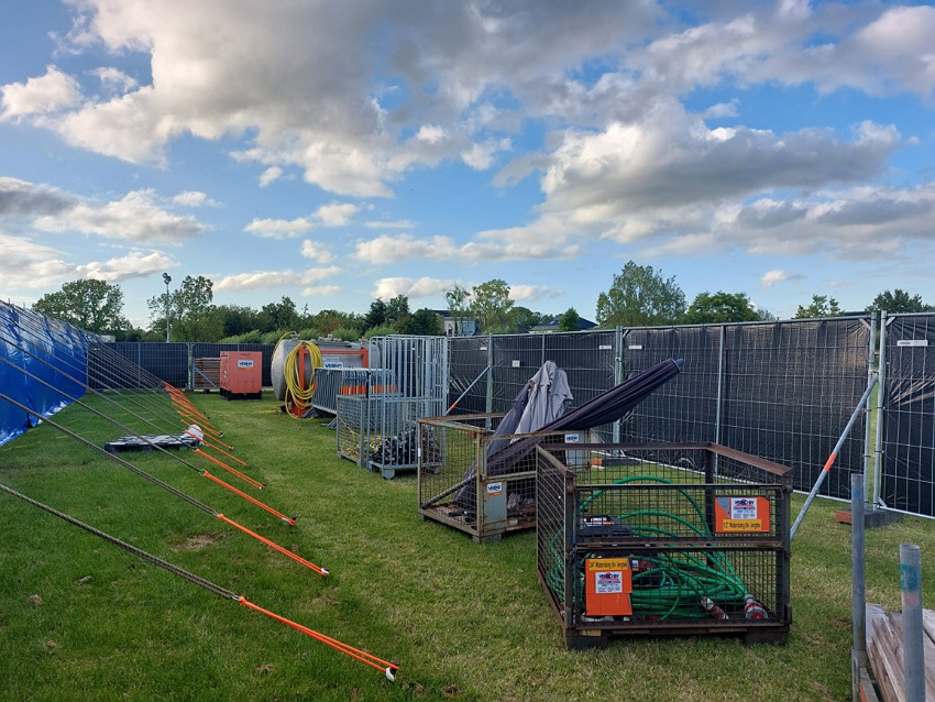 Er is door de mannen van de tentcommissie hard gewerkt om alles op tijd klaar te hebben. Het weer was ook gisteren onstuimig. De hekken om het terrein zijn daarom pas vanmorgen geplaatst. Er is een prachtige entree gemaakt. Vanaf de kermis loop je onder een mooie stellage door het feestterrein op. Als reporter van de Gört mocht ik achter de tent een kijkje nemen. Daar staan een grote koelwagen, een enorme watertank voor o.a. het spoelwater van de biertaps, een aggregaat en nog meer houten banken en tafels. Vrijdag komen er heel veel mensen naar de Bubbels, Bier & Ballen Bingo.