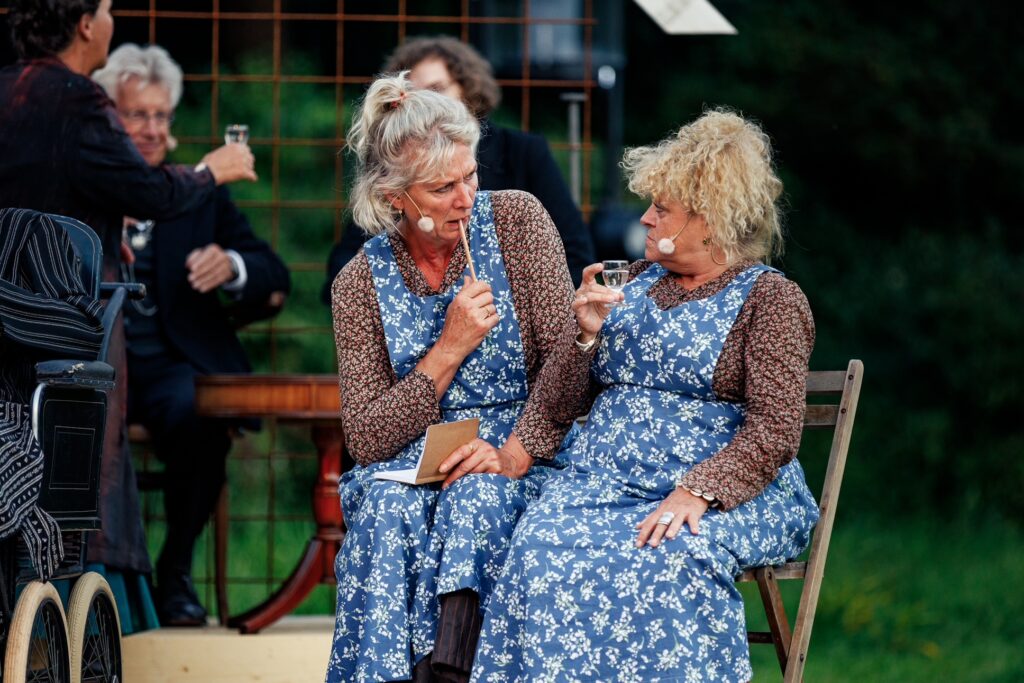 Buren en theatermakers liepen mooi in elkaar over. Het verjaardagsfeestje van buurjongen Tieme werd verrast met een Lang zal ze leven uit de speakers van de opstartende technici. Er werd onder de terugkoppeling van de regisseur gezwaaid naar Henk Meulenbeld die zijn nieuwe uitzicht toonde aan zijn bezoek. Folkert en Marieke overleggen met de productie wanneer ze de was kunnen ophangen en weer binnen moeten halen. En Johan Faber kwam maandagochtend even bij Hanna Hovinga (productie) in het ijsbaangebouwtje om te vragen of hij nu wel mocht maaien, qua timing. Zo wordt er meegedacht!