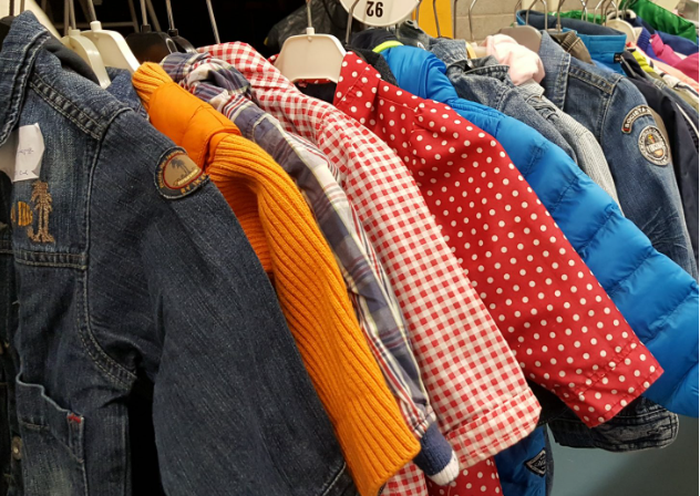Kleding die na de ruilbeurs overblijft leveren we in bij de kledingbank.