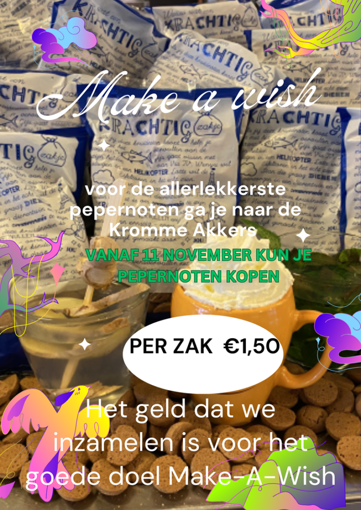 De lekkerste pepernoten komen dit jaar uit Garnwerd, en je steunt er ook nog het goede doel mee! Kinderen van de Kromme Akkers komen volgende week aan de deur om te verkopen, maar iedere dag mogen dorpsbewoners ook pepernoten kopen in de Kromme Winkel. Voor de actie hangt een aparte QR-code bij Kromme Winkel. Goedkoper dan de supermarkt én (zonder overdrijven) ontzettend lekker!