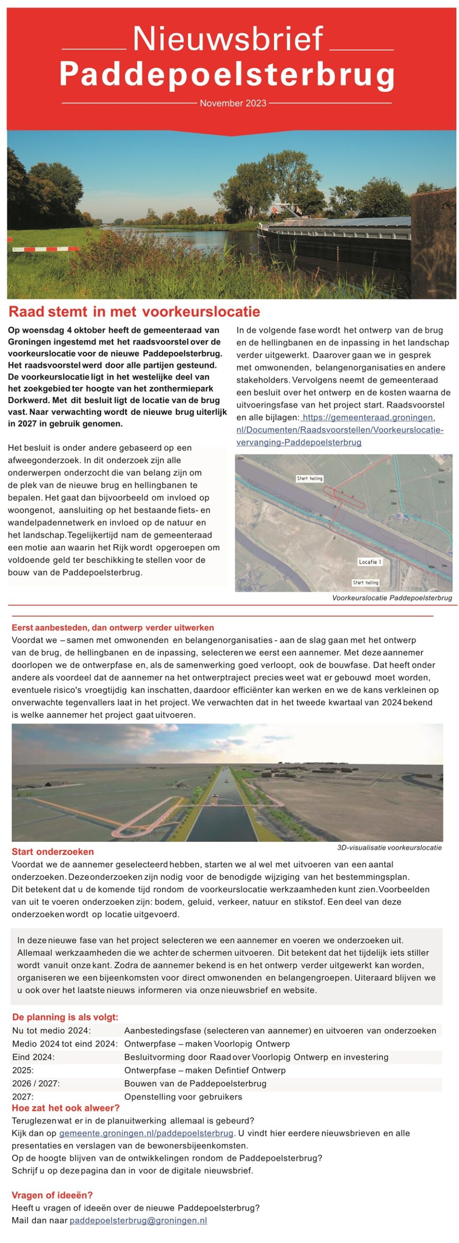 Raad stemt in met voorkeurslocatie Paddepoelsterbrug