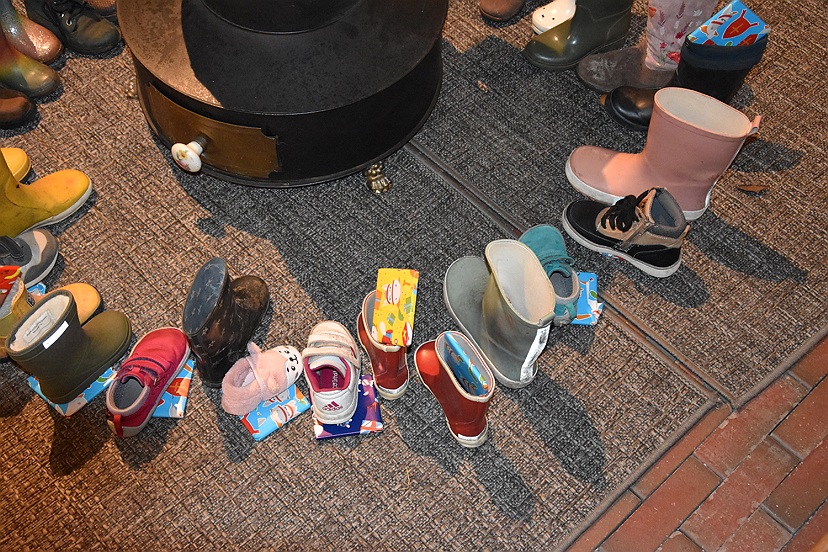 Ruim 30 peuters en kleuters uit Ezinge, Feerwerd en Garnwerd hebben vanmiddag hun schoentje of laarsje gezet rond de oude potkachel in De Doorrit. Er was al één Pietje in Garnwerd om samen met de kinderen de schoenen te zetten, een liedje te zingen én alle prachtige tekeningen in ontvangst te nemen.