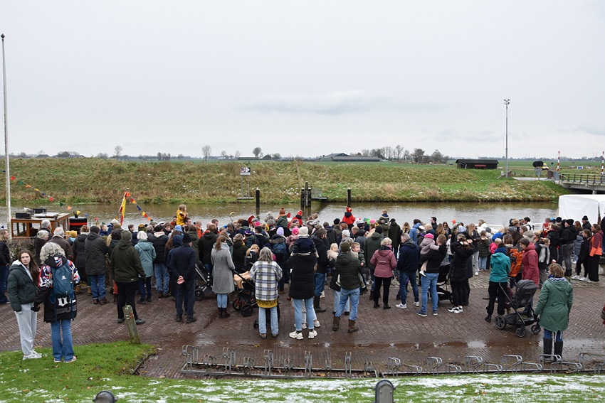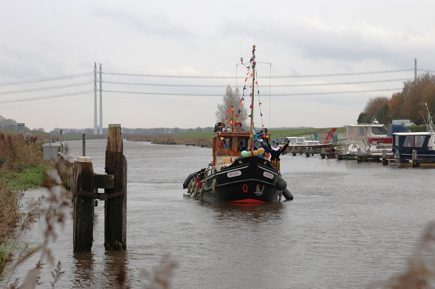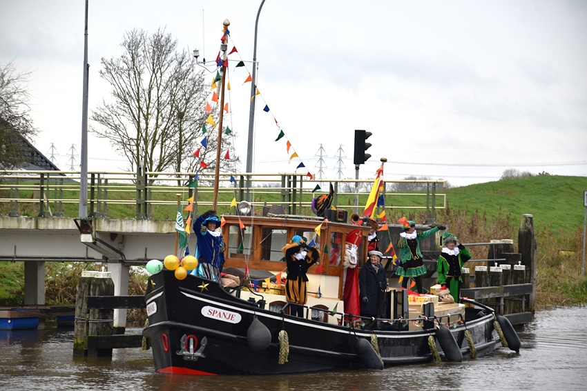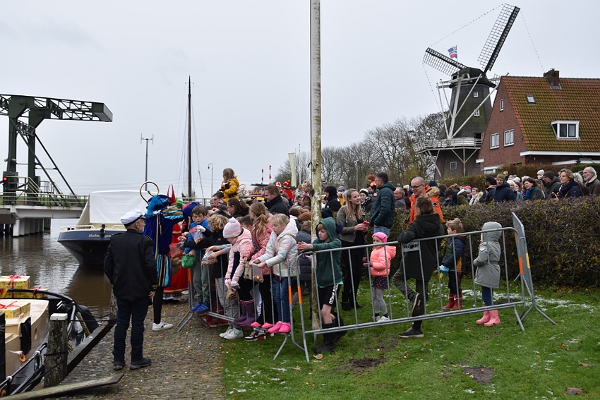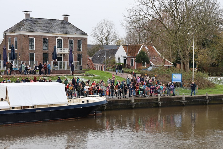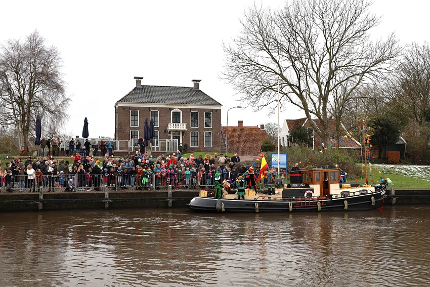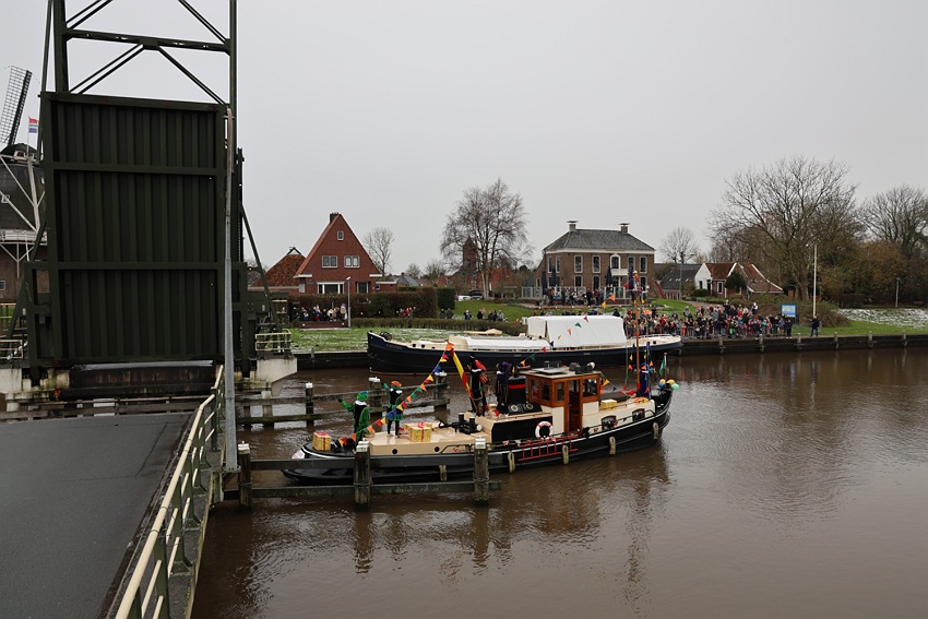 Tot grote vreugde van veel kleine en grote kinderen meerde de boot van Sinterklaas vanmiddag weer aan op de kade voor café Hammingh. Het was even spannend of de brug in Garnwerd wel open zou gaan, de stoomboot ondervindt veel problemen in het hele land. Met hulp van Tieme, die op de rode knop drukte, lukte het de brugwachter om de brug open te krijgen.