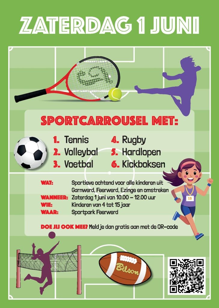 Op zaterdag 1 juni organiseren zes sportclubs uit Middag-Humsterland een gezamenlijke afsluiting van het sportseizoen. Alle kinderen van 4 tot 15 uit de regio kunnen zich gratis aanmelden; nieuwe sporten ontdekken en wellicht nieuwe (sport)vriendjes maken.