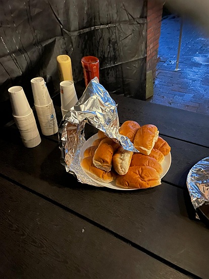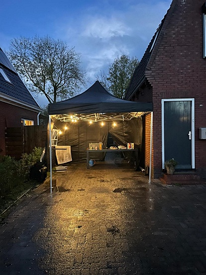 Ook dit jaar hadden we vanuit de Dorpsvereniging een tent staan waar de kinderen chocolade melk konden halen en/ of een broodje knakworst. Dit jaar stond die aan de Hunzeweg 50.