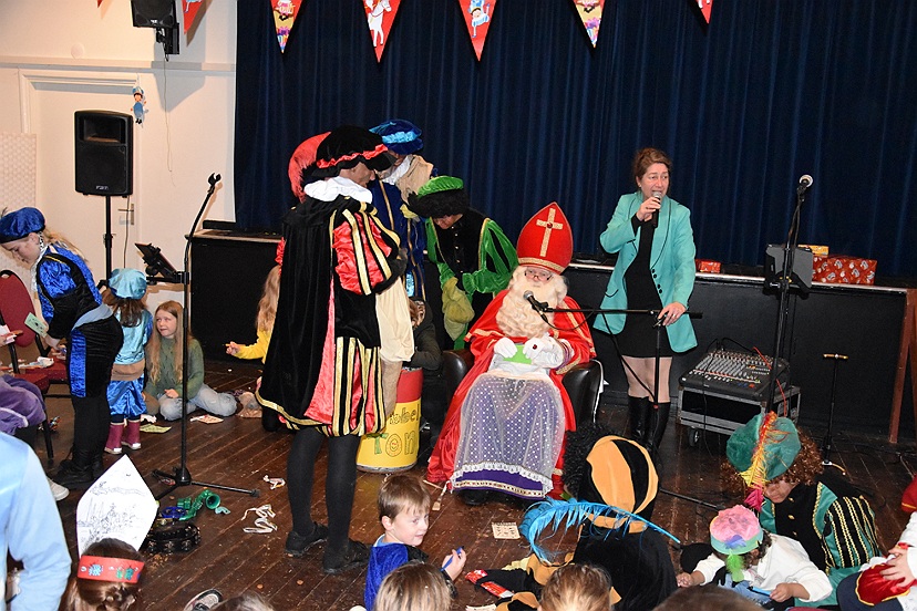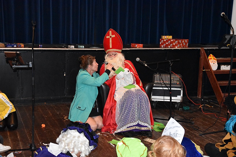 Na aankomst mochten alle kinderen die gister hun schoentje gezet hadden in De Doorrit deze weer ophalen. Iets later op de middag was er voor alle kinderen uit groep 3 t/m 8, Sinterklaas en de Pieten een muziekfeestje in het Dorpshuis in Ezinge. Miranda Bolhuis en Harry Voornhout zorgden voor swingende muziek en een spannende Sinterklaasbingo. De aanwezige kinderen wilden zó lang doorspelen totdat iedereen een prijs had gegrabbeld uit de grabbelton. Na dit hele leuke feestje moesten Sinterklaas en de Pieten weer veder en zwaaiden en zongen alle kinderen hen uit: tot 5 december!
